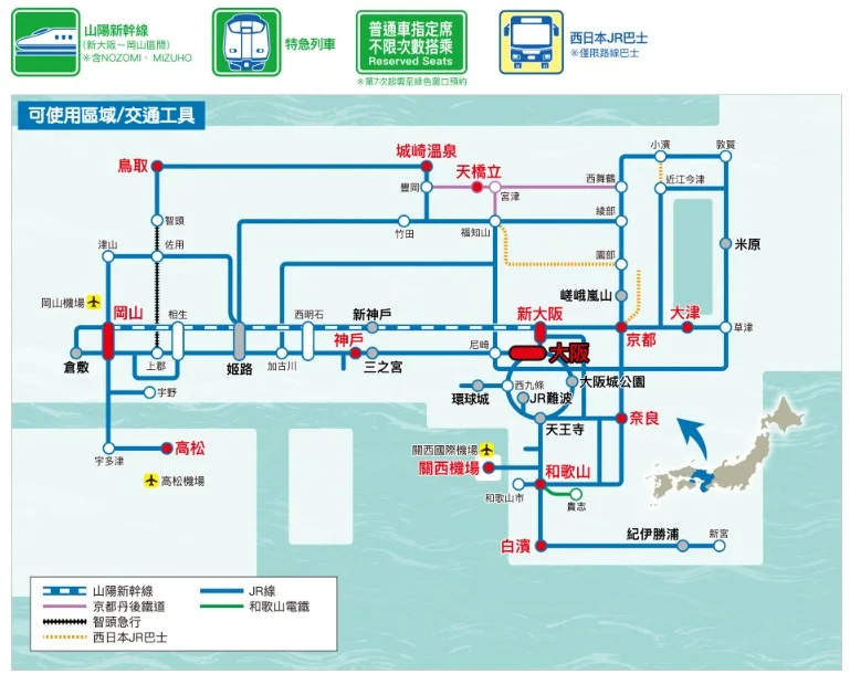 關西&廣島地區鐵路周遊券5日,電子票券兌換及指定席劃位介紹!
