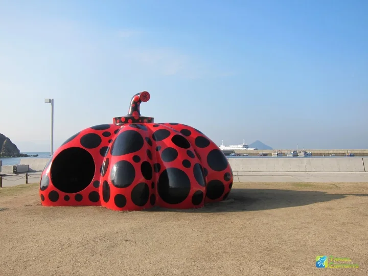 - 草間彌生作品《南瓜》:喜歡「草間彌生」作品的人不要錯過!直島最具知名的代表性地標「南瓜」,是由藝術家草間彌生所創作的作品,以鮮艷顏色與標誌性圓點為特色,紅色位於宮浦港旁,黃色則在靠南邊方向,吸引了不少遊客前去拍照留念。
