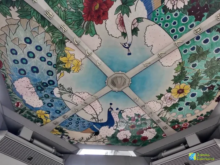 如果來到觀景臺的1樓,別忘了往上看,可以發現那裡重現了初代通天閣令人讚嘆的天花板畫作!