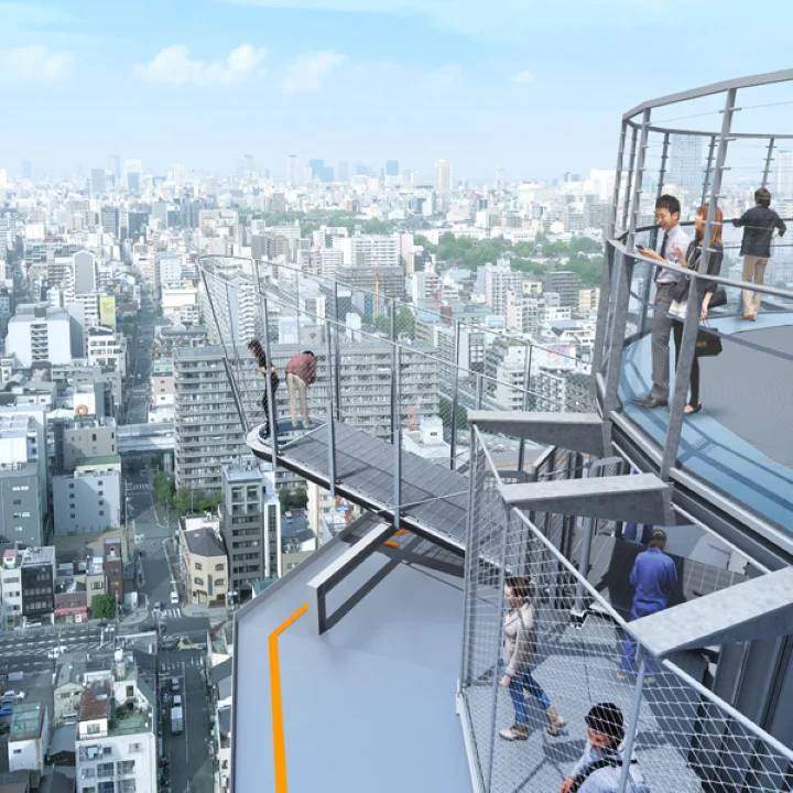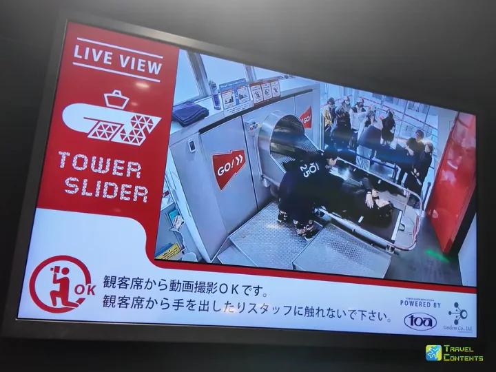 全長60公尺的超長溜滑梯「TOWER SLIDER」,以螺旋狀環繞外牆呈現。只要穿上裝備,雙手抱胸,便可從3樓一路滑行而下,感受速度與刺激的奇妙的快感!