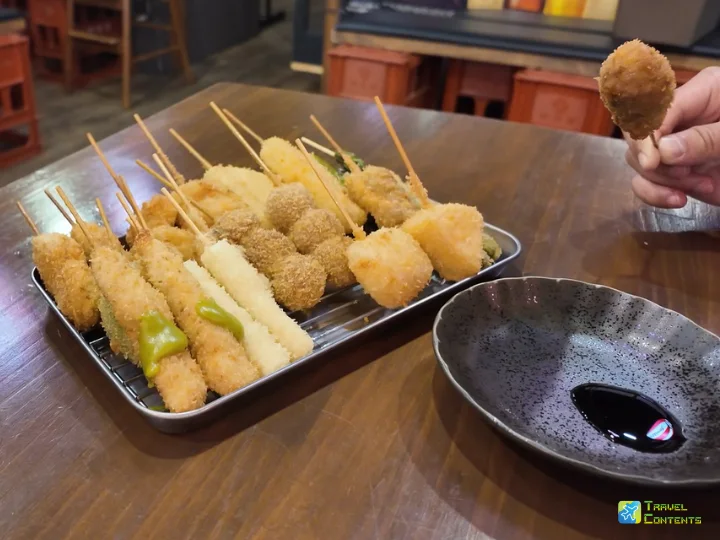 來大阪就是要吃串炸!走進店內,牆上貼滿各種串炸的品項,種類非常多,一不小心就點了一大盤。餐點主要以沾醬方式,酥脆外皮搭配特製醬汁,一口咬下後,真的是滿滿的幸福!