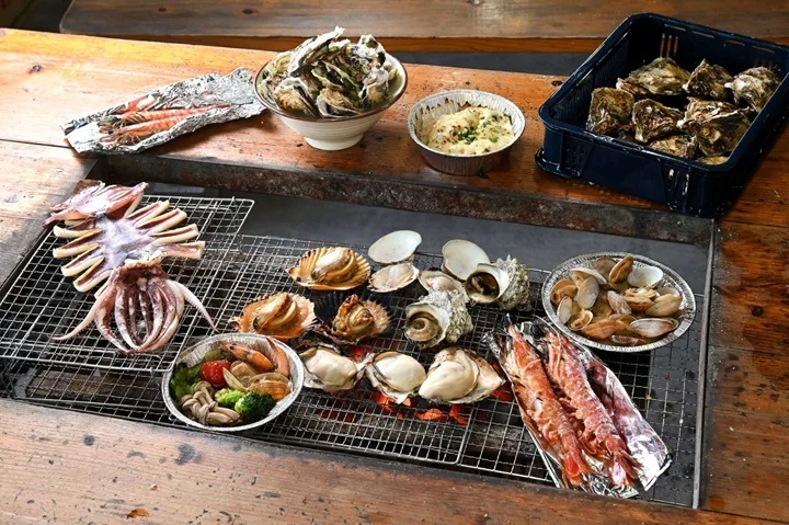 距離海上鳥居步步行約10分鐘,是當地的碳烤海鮮名店,價格公開透明,可選擇自助炭烤或店家代烤,牡蠣與竹崎螃蟹首推必點,享用新鮮現烤海鮮同時搭配蔚藍海景與海洋公路,愜意又舒適。