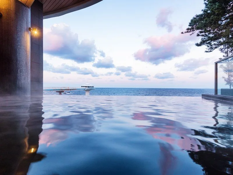 這裡是日本三大古湯之一的“白濱溫泉”,在這多變的風景,您可以沐浴在壯麗的景色之中,讓您身心靈都得到放鬆。泡著溫泉,隨著時間推移,一邊欣賞天海一線的遼闊,一邊享受顏色多變的景色吧。