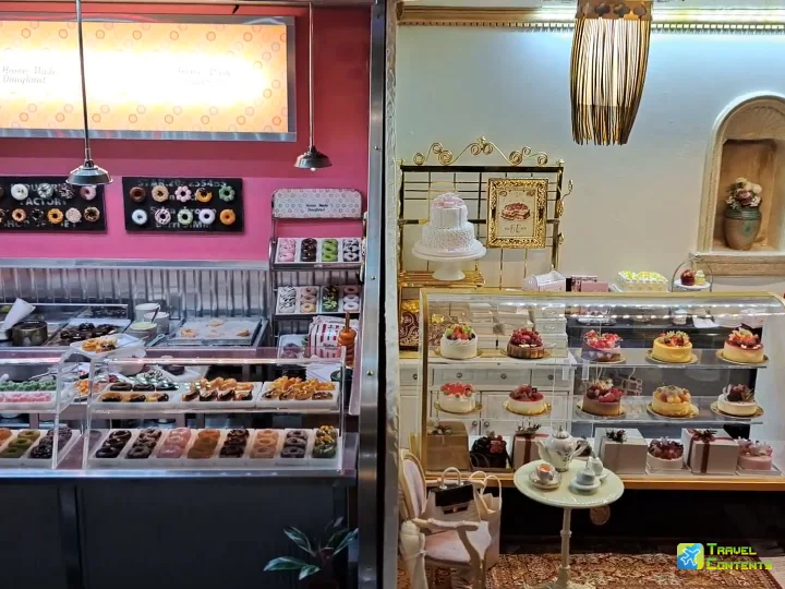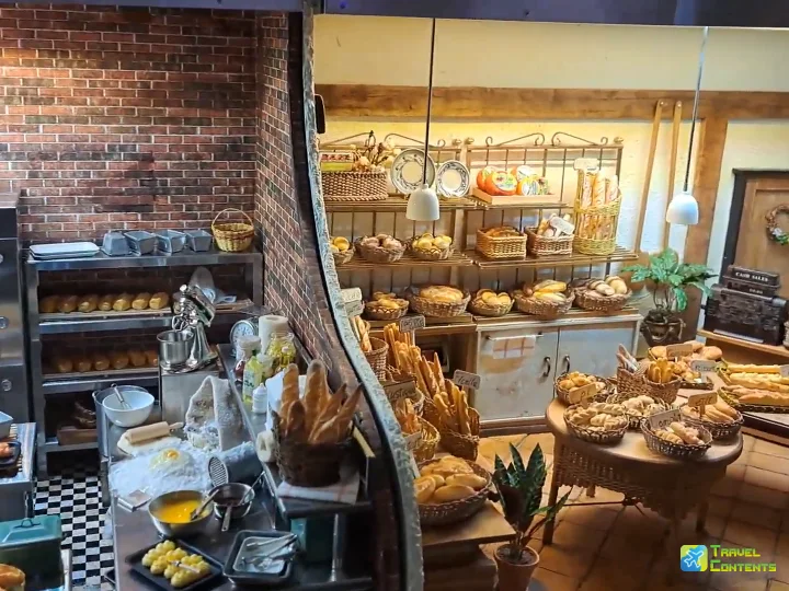 一旁的精緻迷你店鋪裡的麵包、甜甜圈等,每樣甜品看起來都超級可口~~