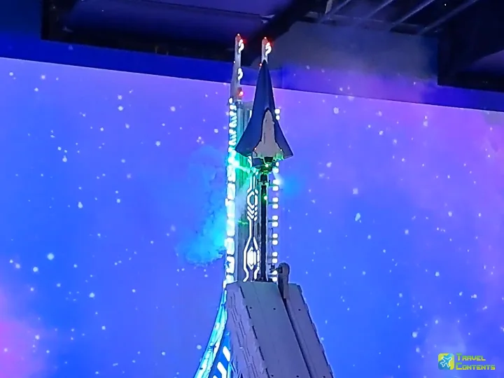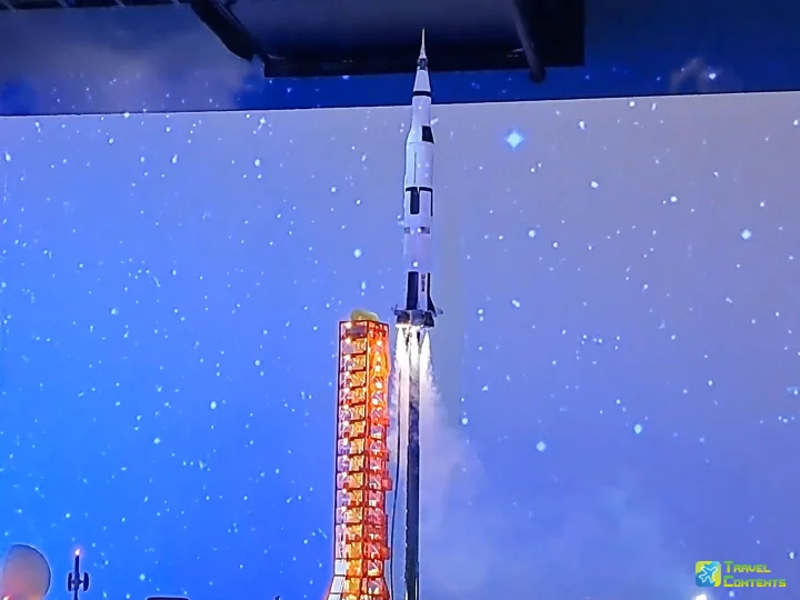 往旁邊一看,太空梭與農神5號火箭相繼沿著軌道上升,發射成功!